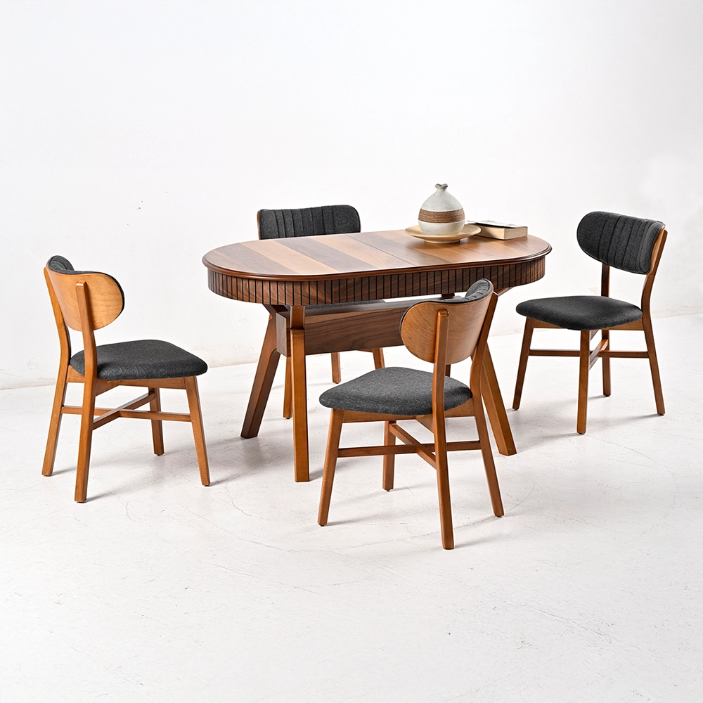 Oval Kartal Kapitone Masa Takımı, Ceviz rengi ve kapitone detaylarıyla modern ve zarif bir görünüm sunar. Oval formu ve şık detayları, yaşam alanınıza sofistike bir atmosfer katarken, beyaz rengi ile ferah bir ortam sağlar. Estetik ve işlevselliği bir arada sunan bu takım, dikkat çekici bir seçimdir.
